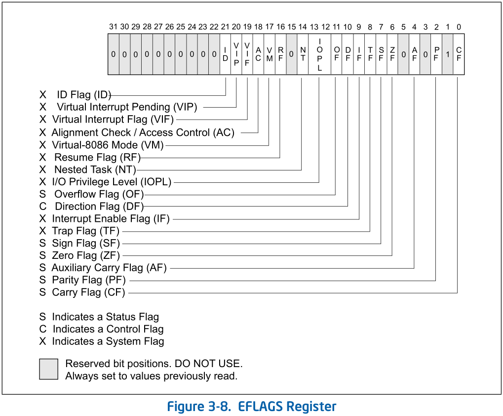 | repe/repz | Repeat while the ECX register not zero and the ZF flag is set | for(; rcx != 0 && ZF == true; rcx–) |