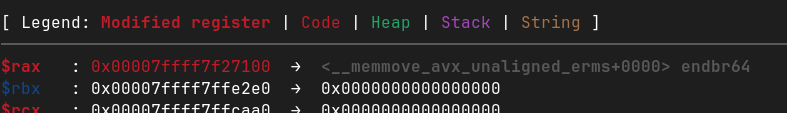 | movs | Move string | *(rdi++) = *(rsi++) |